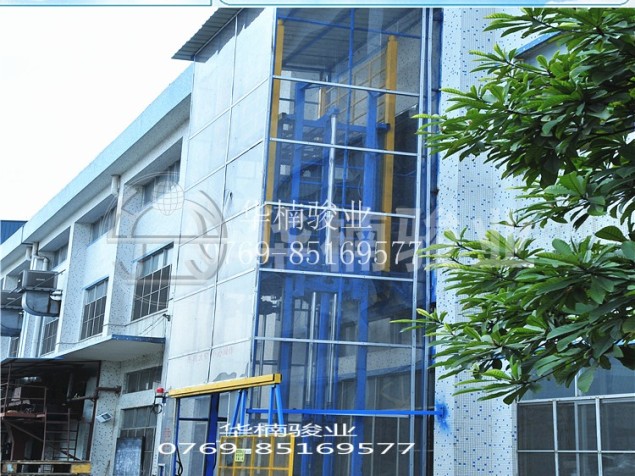 此款設(shè)備屬于普通二樓升降貨梯,外圍藍(lán)色框架,封PC板外圍,內(nèi)部框架噴涂黃色油漆,設(shè)